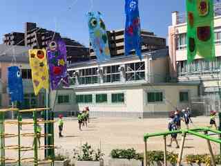 校庭で短距離走・リレーに取り組んでいました。 まずは、ダッシュの練習や、大きな歩幅で走る、スタートの練習などのウォームアップの後、チームごとに分かれて、バトンパスの練習をしていました。 幼稚園の園庭では、青空の下、園児作成の鯉のぼりが気持ちよさそうに泳いでいました。 3年生のがんばりに拍手です! ※児童がタブレット端末を持ち帰っています。順次学校でも使用方法について学びますが、ご家庭でもネット環境の下、積極的に使用してみてください。「自分専用の文具として、端末を日常的に使用できること」を目標に進めてまいります。導入にあたってのガイドブックは、学校ホームページトップにありますのでご活用ください。【添付ファイル】