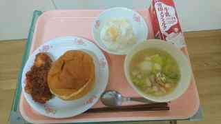 牛乳 ミルクパン フィッシュフライ いんげん入り野菜スープ フルーツヨーグルト