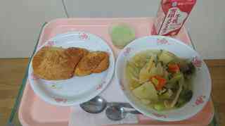 牛乳 きなこ揚げパン 春野菜のポトフ 抹茶ミルクゼリー