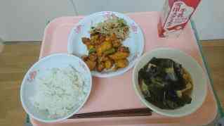 牛乳 魚のオーロラソース和え ゆで野菜 キャベツの味噌汁